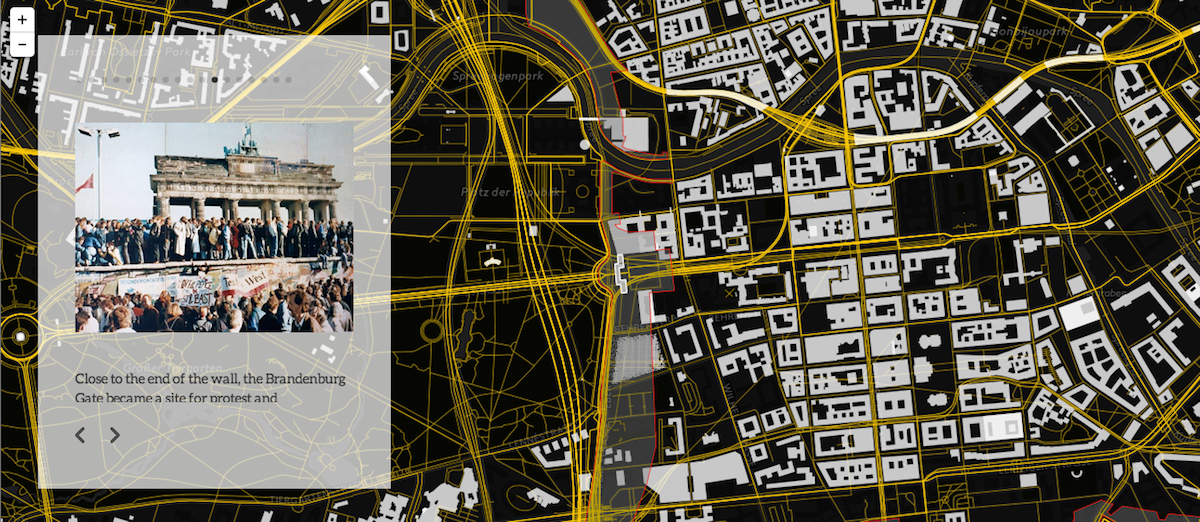 November 9th was the 25th anniversary of the Berlin Wall coming down and to commemorate the anniversary of this monumental event we have created a [beautiful interactive map story] using our easy to use story telling tool Odyssey.js and CartoDB!