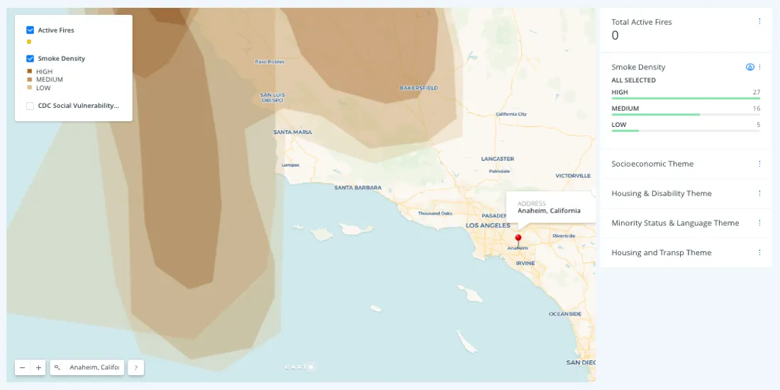 Public health official looking for more demographic information on populations at-risk for respiratory complications resulting from exposure to high level of smoke can turn of a third layer of data provided by the Social Vulnerability Index (SVI).