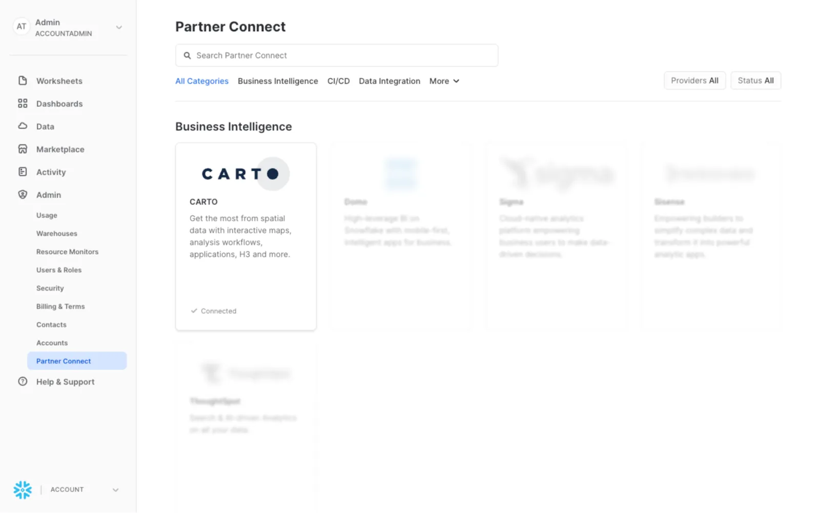 Getting started with CARTO on Snowflake Partner Connect