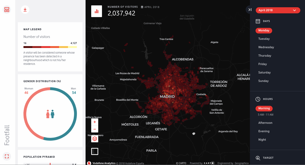 Since its debut new features have been added equipping users with insights on mobility patterns for better decision making in Retail Real Estate Tourism Public Administration and more. In October public officials in Bizkaia used Vodafone Analytics to manage monitor and measure the local impact of MTV Music Week with data from IoT sensors.
