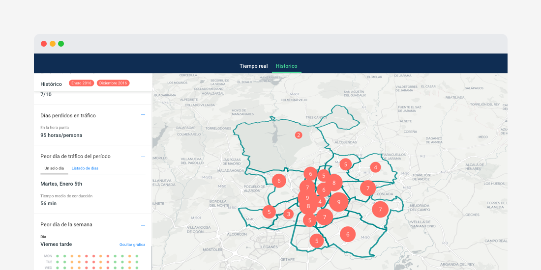 This map features the use of the lasso function to draw shapes and look specifically at the data points within a custom geography.