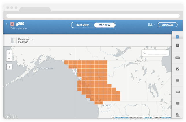Once the command has run though the data are available in the CartoDB dashboard ready for mapping. (It may take a minute for the dashboard to recognize the new table be patient and hit reload.)