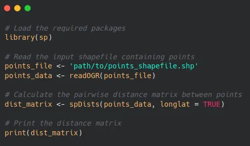 Using R to create a distance matrix between all points.
