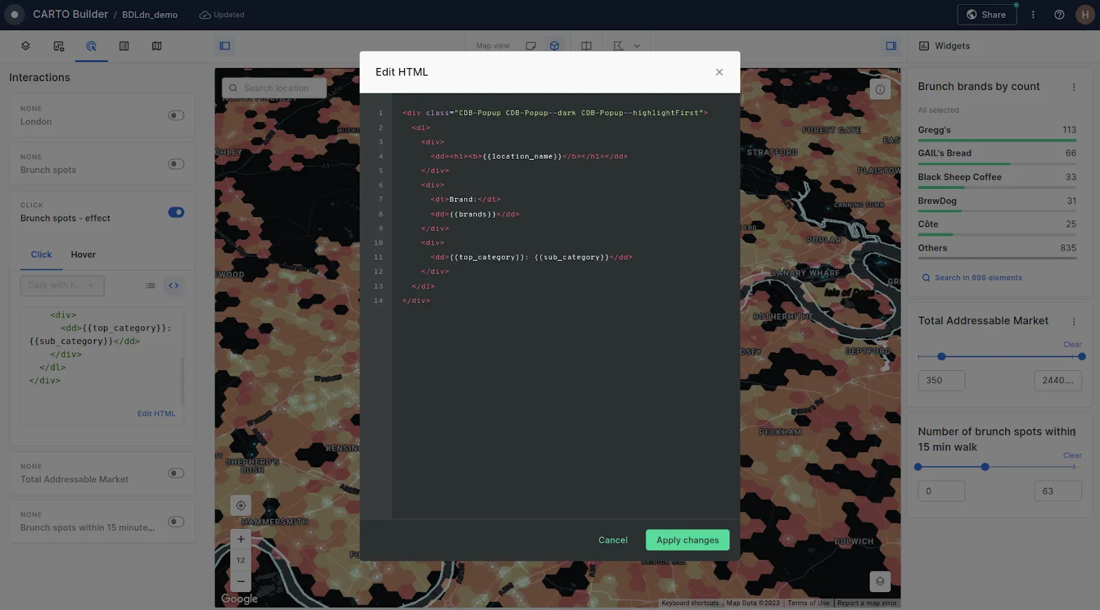 HTML being used in CARTO Builder to create a custom pop-up.