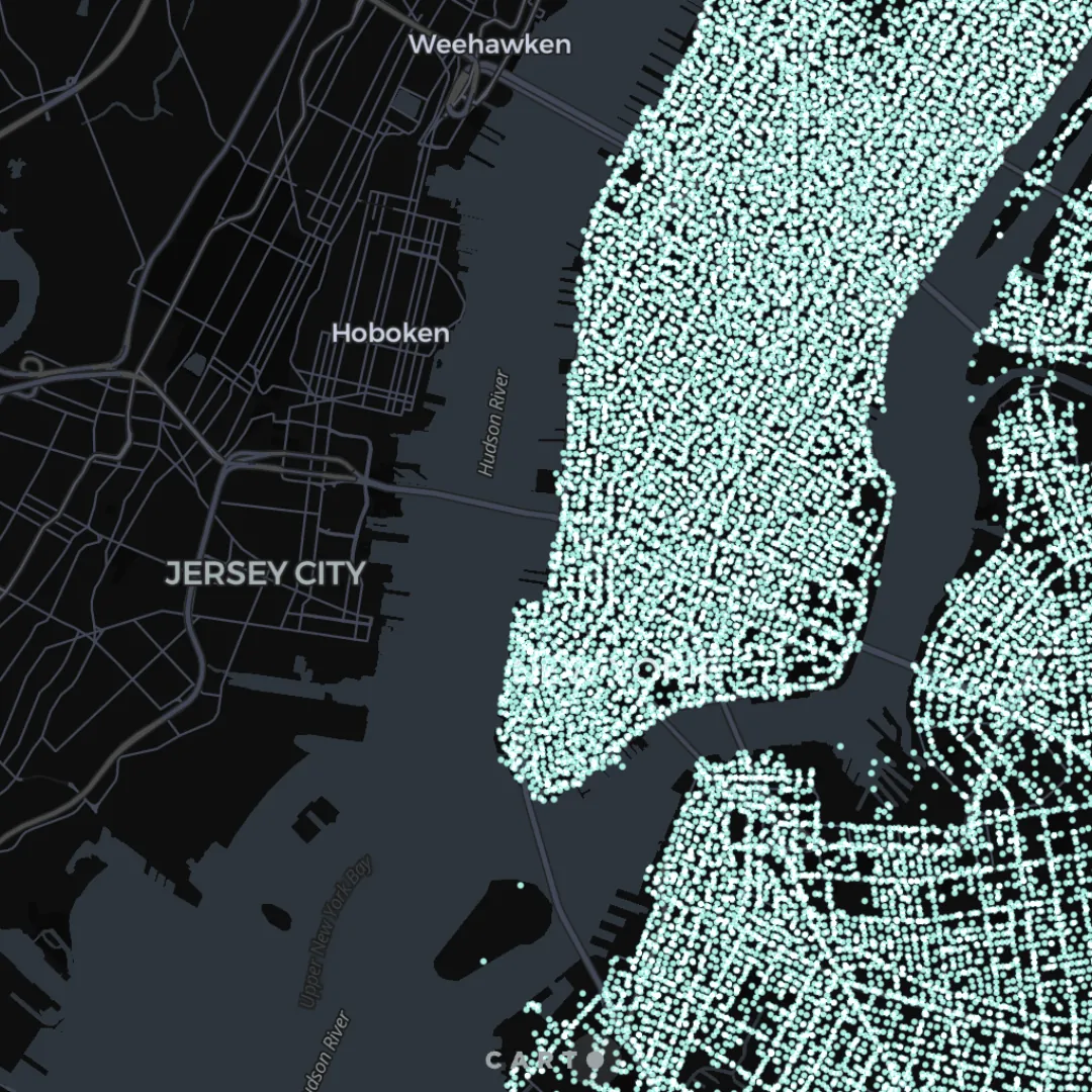 CARTO’s Dynamic Tiling implementation is unique in the sense that you do not need to ETL your data into any other mapping service so it can be then rendered on maps; our technology works natively with your data directly in your data warehouse.