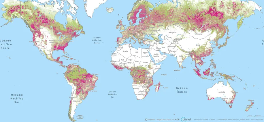 2000 & 2010 Global Tree cover and loss. Hansen/UMD/Google/USGS/NASA, accessed through Global Forest Watch.