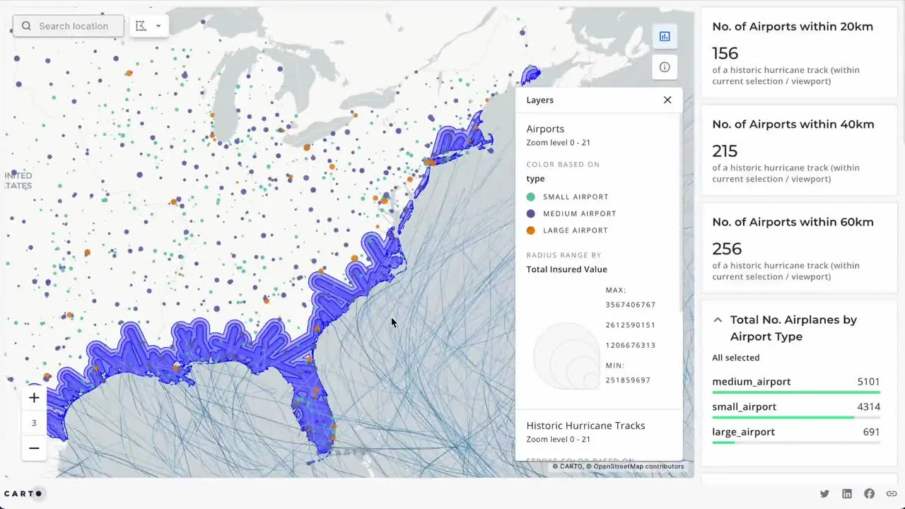 Insurance](../industries/insurance-and-reinsurance.html)LogisticsReal EstateFinancial ServicesRetailMarketing & AdvertisingMobilityAll industriesNetwork DeploymentCatastrophe ModelingFraud DetectionMarket AnalysisEnvironmental ManagementSite SelectionGeomarketingData MonetizationIoT AnalyticsSupply Chain OptimizationHealthcare AnalyticsTerritory PlanningAll use cases[