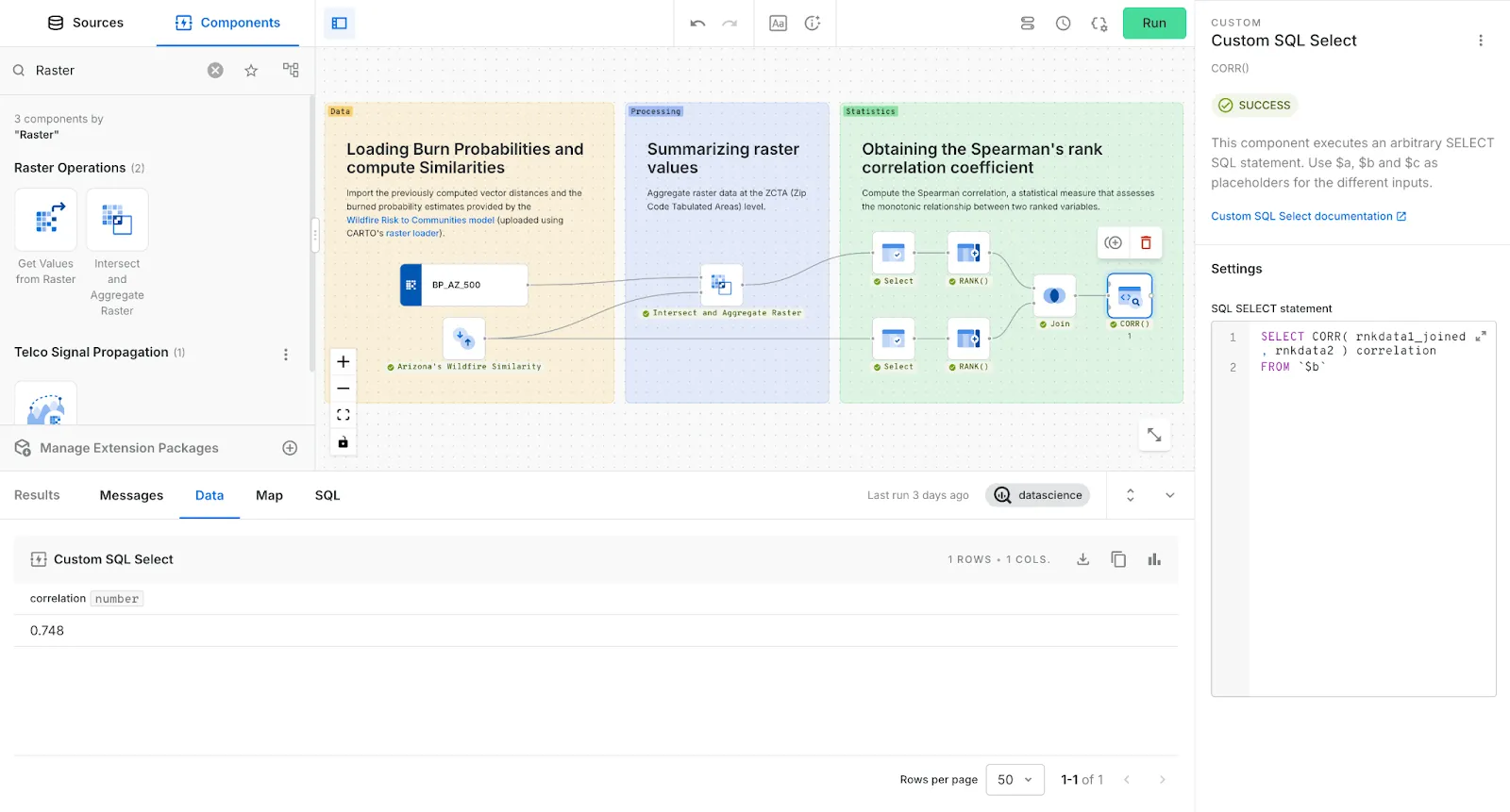 This new addition means that you can now integrate powerful, analysis-ready satellite embeddings of Earth’s surface directly into your spatial pipelines with the ease of CARTO’s low-code tools. Keep reading to learn how!
