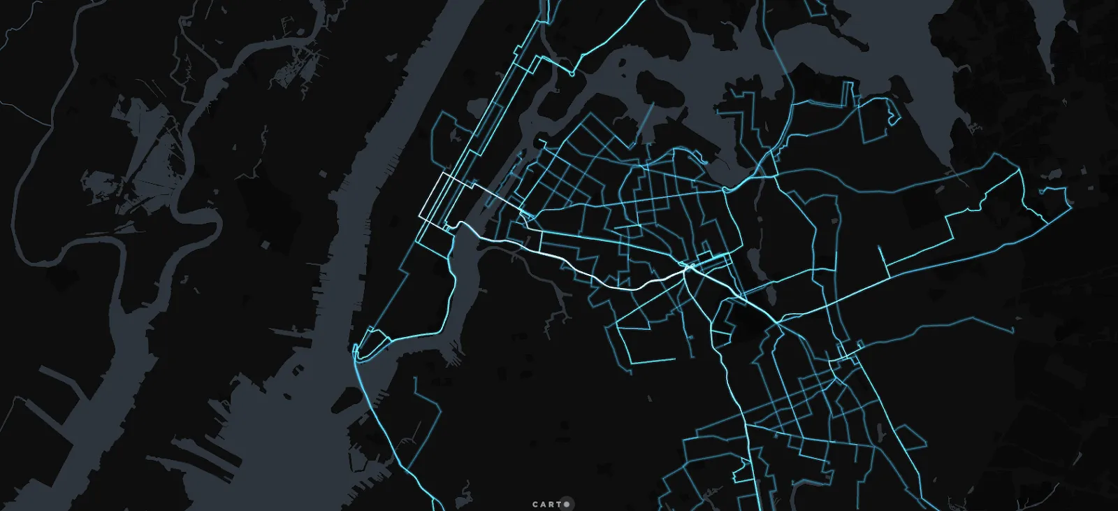 To give more context to these movements we’ve included the bus lines that we just created. Want to emulate the “glowing” effect we have here? Just switch your map to use additive layer blending! We’ve also removed a lot of the layers from the dark matter basemap to really highlight our data, which you find out more about doing here.