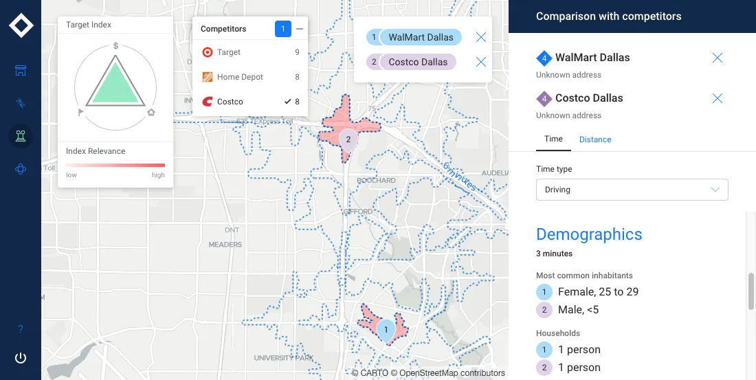For trade marketing managers preparing a product launch understanding which retailers wholesalers and distributors reach certain audiences by location is key to the roll-out’s success. In this case a Trade Marketing Manager needs to analyze which key grocery stores to partner with ahead of launching a new high-end shampoo brand. Using external transaction data (on credit card spending and ATM withdrawals) demographic data from the CARTO Data Observatory and points of interest data it is possible to identify which stores would be best suited to reach their target consumer profile: females aged 25 - 34 with a high disposable income.
