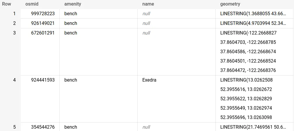 The 16 Google BigQuery OSM tables