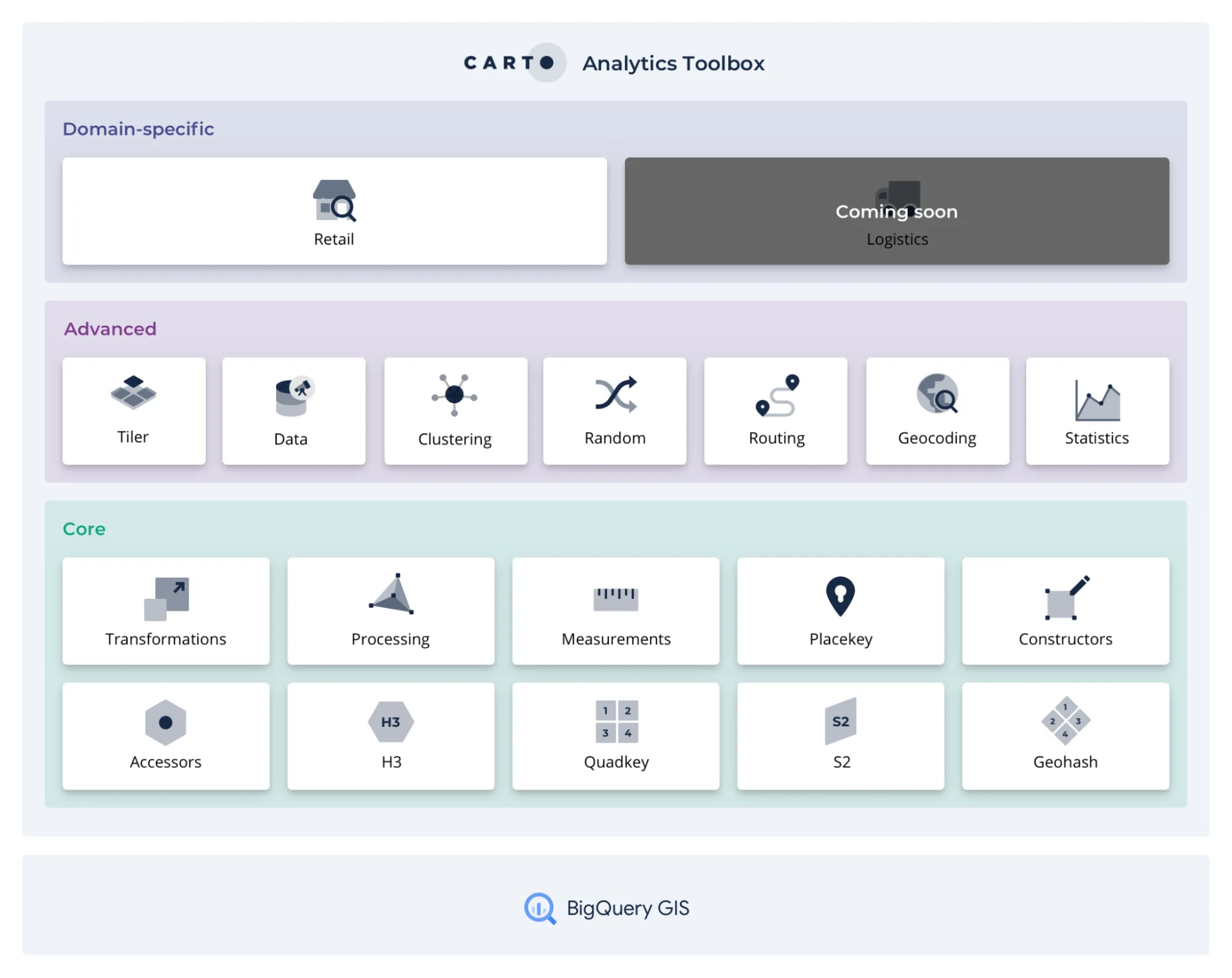 The recently announced CARTO Spatial Extension for BigQuery is a complete redevelopment of our leading Location Intelligence platform. One of the key components of this platform is the Analytics Toolbox which provides a complete framework of analysis capabilities to perform spatial analytics in SQL, computed natively in the leading cloud data warehouse platforms. Our implementation for BigQuery enables users of such a platform to have a fully cloud native GIS and Spatial Data Science experience while keeping the benefits around privacy, compliance, scalability, and lower costs that their data warehouse brings.