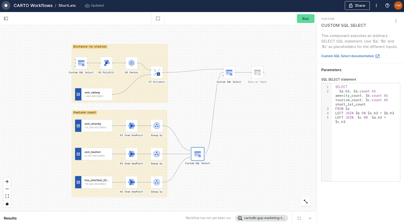 Once extracted, save the table(s) in your data warehouse (or use the CARTO Data Warehouse if you don’t have your own). Explore all of these inputs in the map below (or open in full screen).