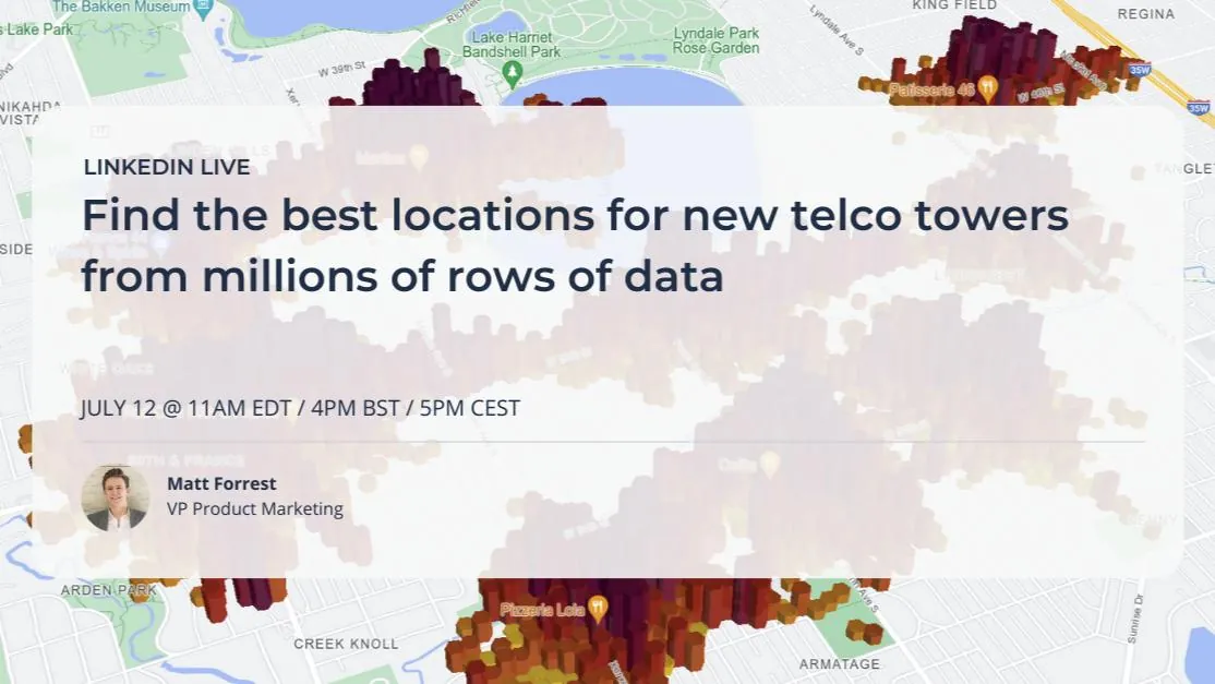 If you’re short on time but interested in learning more about leveraging H3 to tackle the analysis of large datasets, no-code applications for spatial analysis or want to know where to place your telco towers, then Spatial Spotlights are just what you need. Hosted live on LinkedIn, you can join the demos from your phone or watch them on-demand from our Spatial Spotlights playlist on YouTube.