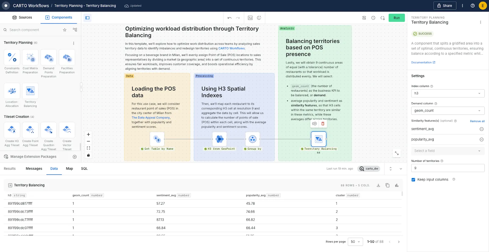 Balancing territories in CARTO Workflows